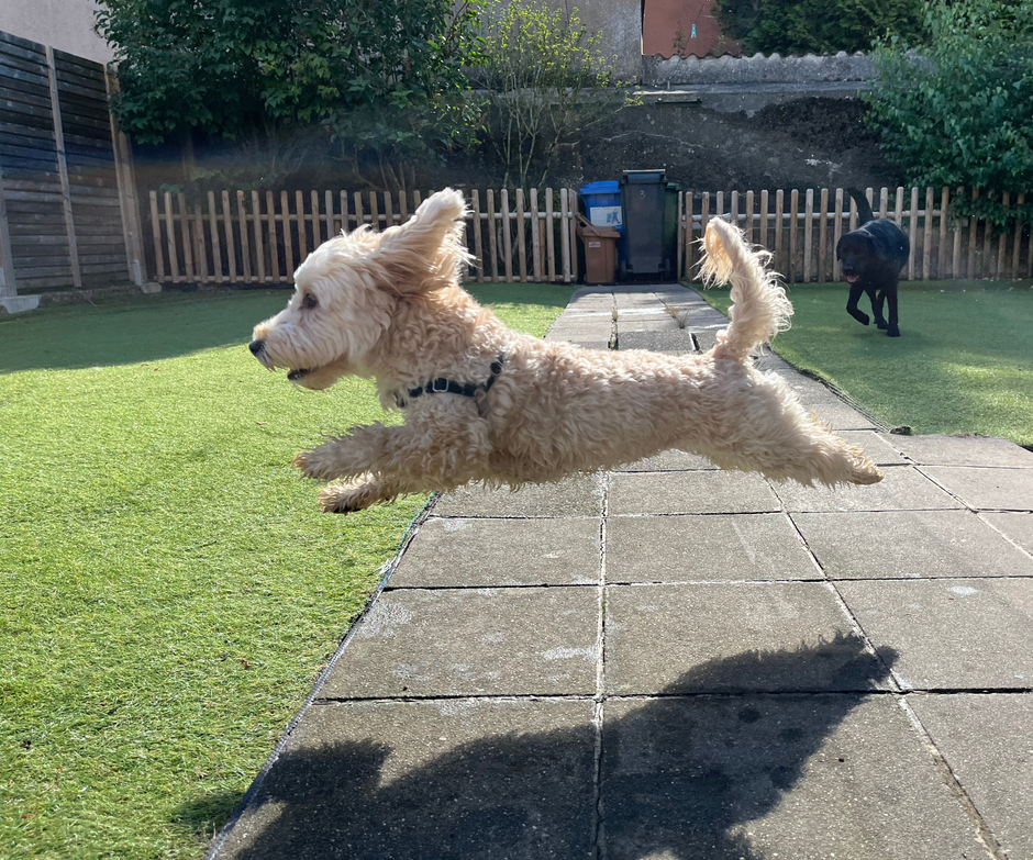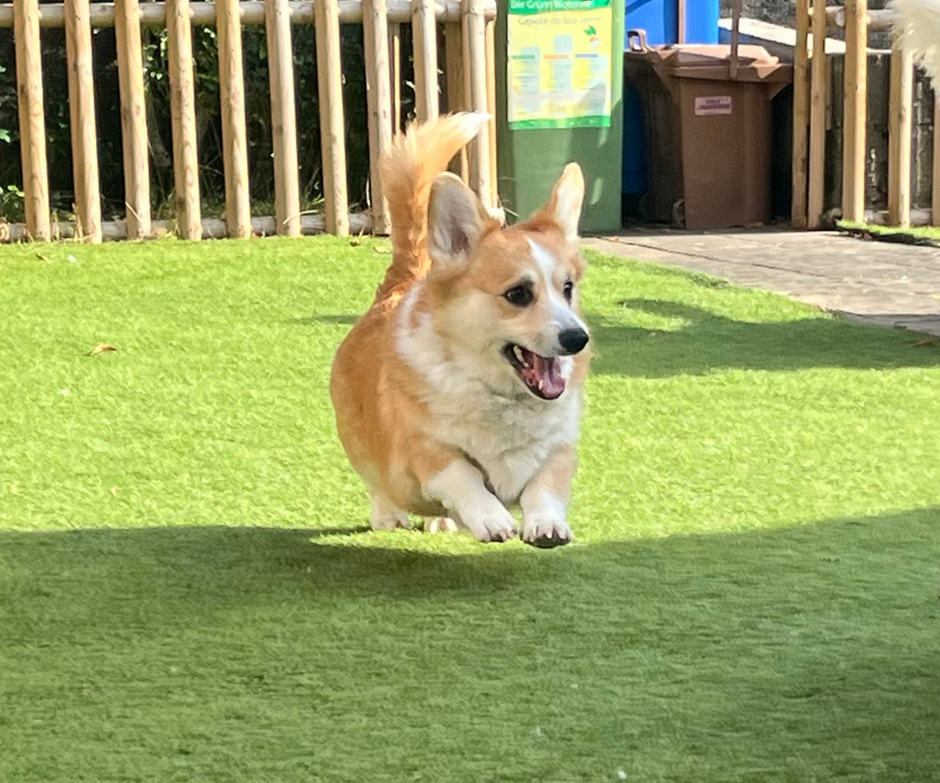 • Keng Käfeger, d‘Hënn kennen sech de ganzen Dag fräi am Haus an am Gaart beweegen a selwer entscheeden, ob se spillen oder raschte wëllen.